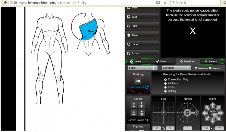 JR19759Keymaster@Streetwise- Are you masking the dress to the circle or the circle to the dress? It sounds like you’re doing the later. The way masking works is that the item you currently have selected is the item that will be masked onto the item you click with the masking tool. If you have an insignia selected and you click on a top with the masking tool you’re going to mask that insignia to that top (it’s how you get patterns on clothing items). However, if you do it the other way round (have the top selected and click on the insignia with the masking tool) the top should only show within that insignia, as in keric’s demonstration. That’s the only thing I can think of that might be going wrong. The top might be disappearing because you have the insignia layered above the top, in which case just move the insignia to the back most layer (or set the alpha to 0% in the colour tab on all three colours), or the insignia is positioned in a place that the top isn’t (e.g. the top is in its default position and the insignia is off past the left arm or something like that). I haven’t heard of any masking bugs that cause items to disappear when masked so those are the only things I know of that would be causing that problem.