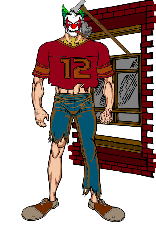 First: Always keep in mind your colours. I’ve always said that the best costumes use 3 colours, 4 at most, plus hair and skin colour. It just makes the whole look more cohesive and together. Also, when doing backgrounds, look to colour it in a way that either complements the character or is neutral, but don’t use a colour that clashes (for example pink and orange) or re-use a colour that has already been used in the costume, because that just swamps the picture in one colour and makes it very hard to look at. Oh and never use two different colours on an item that doesn’t have a distinct place for them (such as the jeans on your clown character).