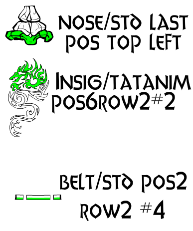 The nose is on the alien, the insignia is on both the lady’s leg and her right shoulder, the belt is used for, the straps from her crotch to the leg guard thing and the aliens vest tabs and belt.