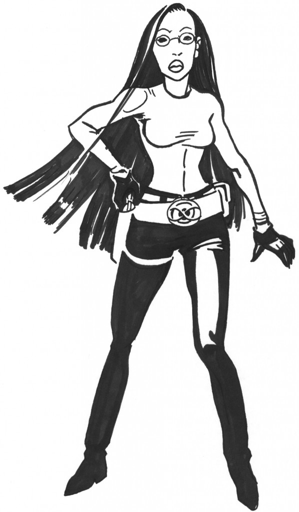 She is sort of a female Doc Savage and has a group of specialist, or Buckaroo Bonzai, she is NOT a Lara Croft knock off and somewhere I have a commission of her beating the snot out of Lara LOL