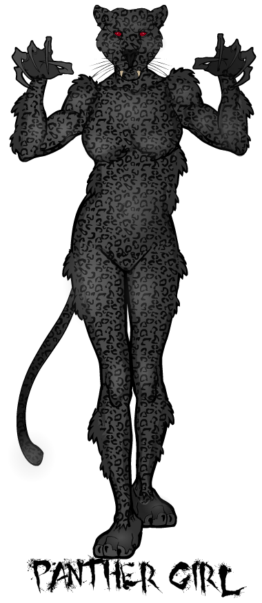 Panther Girl is a therianthropic and can transform into a panther hybrid. When in her hybrid form she has enhanced senses, claws, enhanced speed, agility, endurance and toughness. Her panther style coat allows her to blend in the dark and in shadows.