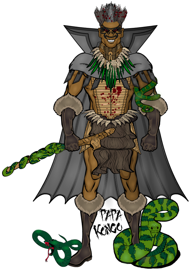 qwerty1971ParticipantFor CDC #530: Papa Kongo was born to parents from different African tribes. Both his parents were minor practitioners of dark magic and they decided to sacrifice their 10 year old child to Voudon dark gods to gain more power. As they argued and fought over who was to receive the more power they slew each other and the child was given all the dark power instead. He spent years receiving instruction from Voudon evil spirits on black magic. He now acts as a representative for them on Earth. He used his powers to take over a portion of the Kongo calling himself Papa Kongo and instituting a cult of personality in his Kingdom using his dark magic to keep control.