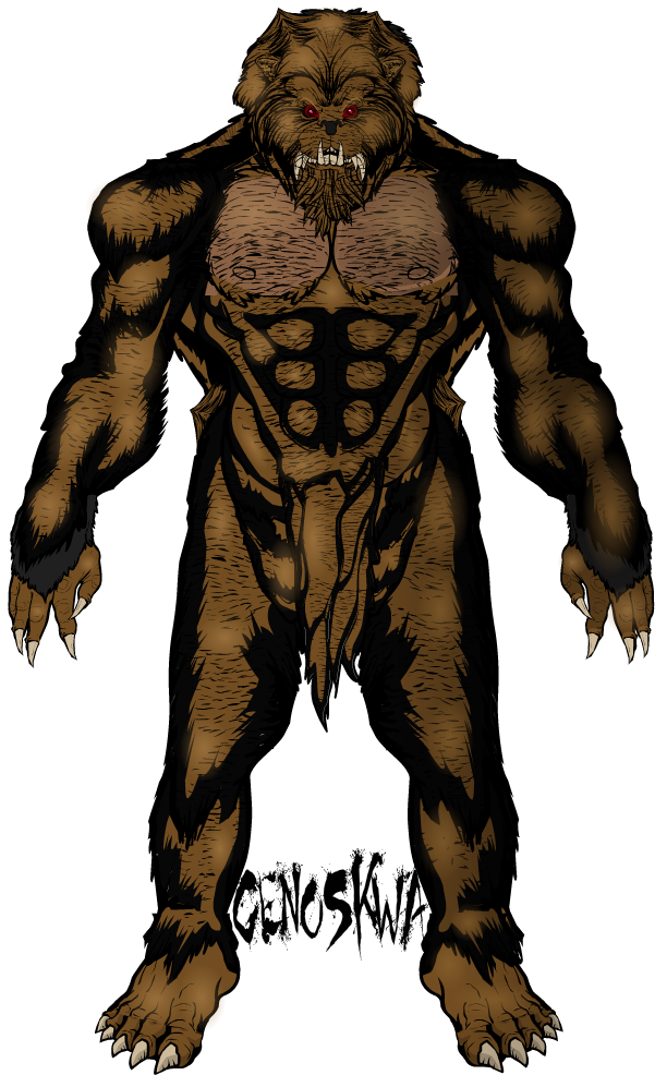 The marauding villain known as the Genoskwa started out as Samuel Blackwater, a First Nation hooligan known to local authorities as a bad seed in the First Nation community. Samuel started out as a petty crook then moved on to bigger and bolder crimes. He was eventually turned in by members of his family for threatening them. He managed to escape jail and when he hid at his home he got into a fight with his father. He slew his father which triggered his GorWol trait from the shock and Samuel finally transformed into the monster he always knew he was. Escaping the area Genoskwa hired himself out as a meta human muscle and has fought members of the Rocky Mountain Rangers, the Maple Leaf Avengers, The Tribe, the Justice Patrol and even the heroic duo of Genie and Bronco Billy.