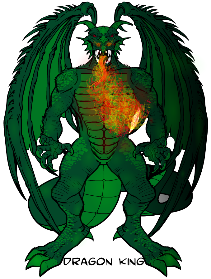 Li Feng was a conscripted farmer in China hating everything about his life. He was caught and jailed a few times for trying to leave the farm he was supposed to work on. Fleeing once again he managed to hide in a cave. The cave was littered with relics from ages gone by. As Li picked up one dragon covered jar it broke in his hands and he was imbued with the spirit of an ancient dragon. Li then wrecked havoc on the surrounding countryside until he was caught by the government and then given a job on the Chinese National super powered team. Dragon King is a large 12 foot tall dragon that can fly, has enhanced strength and durability, breathes fire, and is beginning to learn how to use his magical nature to cast spells. He is a fearsome opponent.
