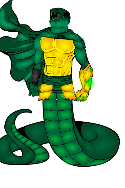 Powers: SPEED, STRENGTH, HYPNOTISM, POISON BITE AND SNAKE TRANSFORMATION