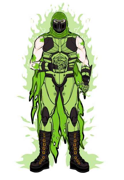 Famine- A former Soldier and victim of an american experimental virus. Famine’s country was captured by American Troops and subject to multiple experiments involving biological weapon’s. This resulted in his sickly, almost death like appearance. Needing a mask to breath, and an almost unknown remaining life span, does not encumber his ability as a soldier. In fact, it has only reinforced his motivation for revenge. A quiet almost shadow like Killer. Brutal with his tactics often leaves a disgusting looking body that has either been infected by him, or by one of the many agents he carries around with him.