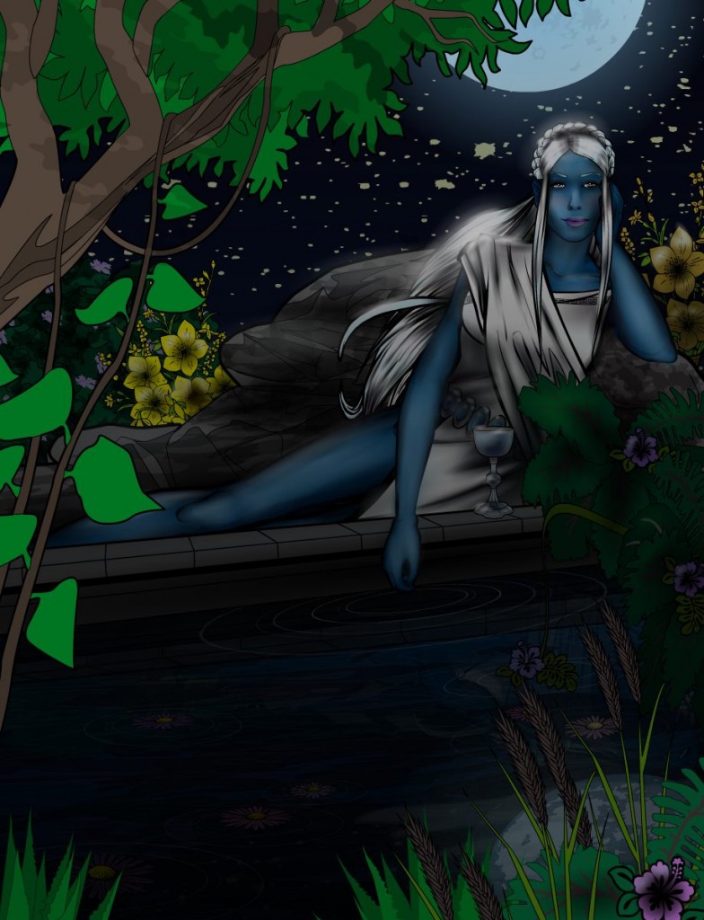Have been really busy these last months, but I’ve finally been able to finish a picture! She doesn’t have a name, just a title. She is the Prophetess of the Moon. In my original campaign setting, she is one of the two leader of a society based on the worship of the Moon and the Sun. I will eventually do her counterpart, when I’ve thought about the general feeling I want to give to his portrait.