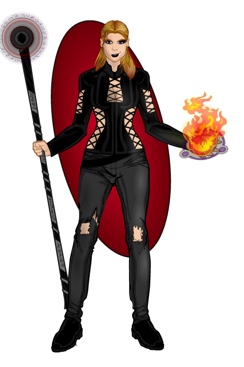 amsParticipantI like the crossed laced shirt better. I would also suggest to lower her eyebrows to give a more menacing look. Place some black gradients behind her eyes for some evil demonic eyes. Nice job.
