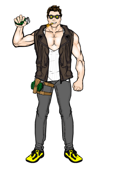 At first glance he may look rather normal and unintelligent, a lot of the time he acts like it too. But he is in fact a genius. He has an unmatched understanding of maths and physics which allow him to calculate the exact right angle of projection to hit a target. This means he virtually never misses and can throw a grenade extremely far and still get a hit on target. A long with his intelligence he also has an incredibly strong throwing arm allowing to throw a grenade over hundreds of meters and he is also a talented bomb maker. He works as a university professor of physics and maths and also regularly puts his throwing arm in to use playing a variety of sports such as cricket and baseball. He is a founding member of the night watch and is in the most part responsible for its creation. When walking home from a late night marking essays at work he came across the blank detective fighting a gang, as he was about to be stabbed the professor throw a stone which caught the gangster and knocked him out saving the blank detective from injury. After originally joining him as a a duo he suggested that they form a team to truly stop crime on the streets of the city, the blank detective agreed and even suggested he be leader but he rejected this offer knowing the blank detective would be a better leader.