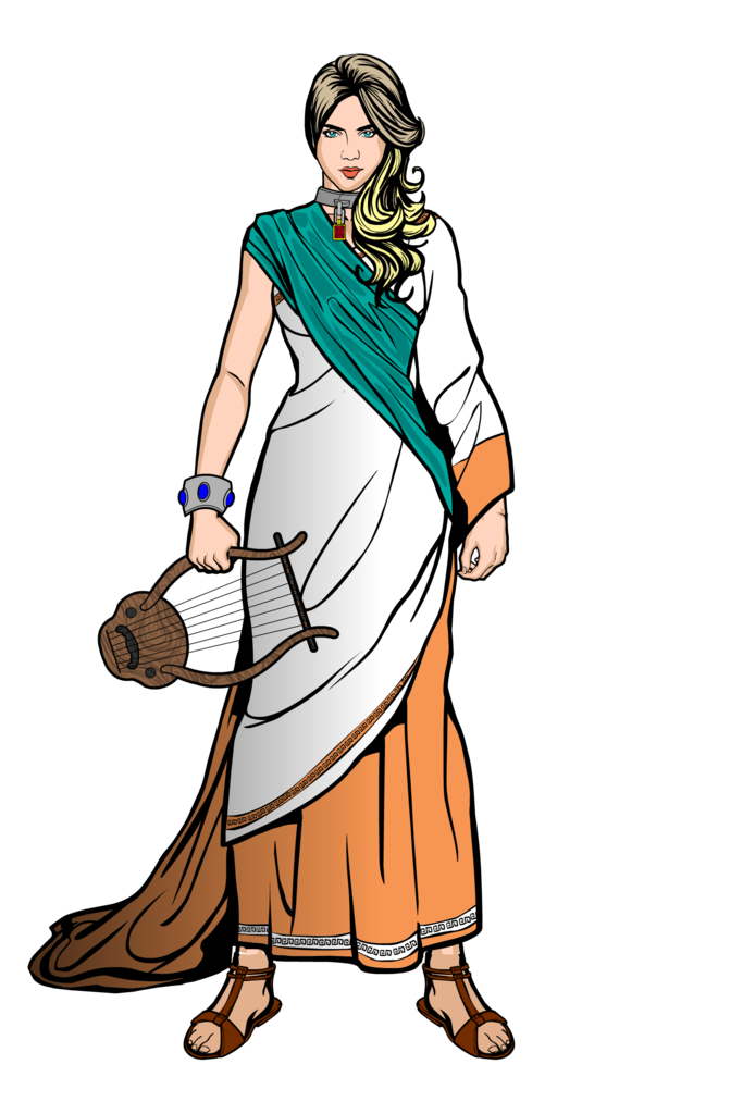 I saw all the pretty Roman-ish style togas and couldn’t help myself. I’m assuming she was a captured noblewoman who (unhappily) plays the harp while plotting her escape.