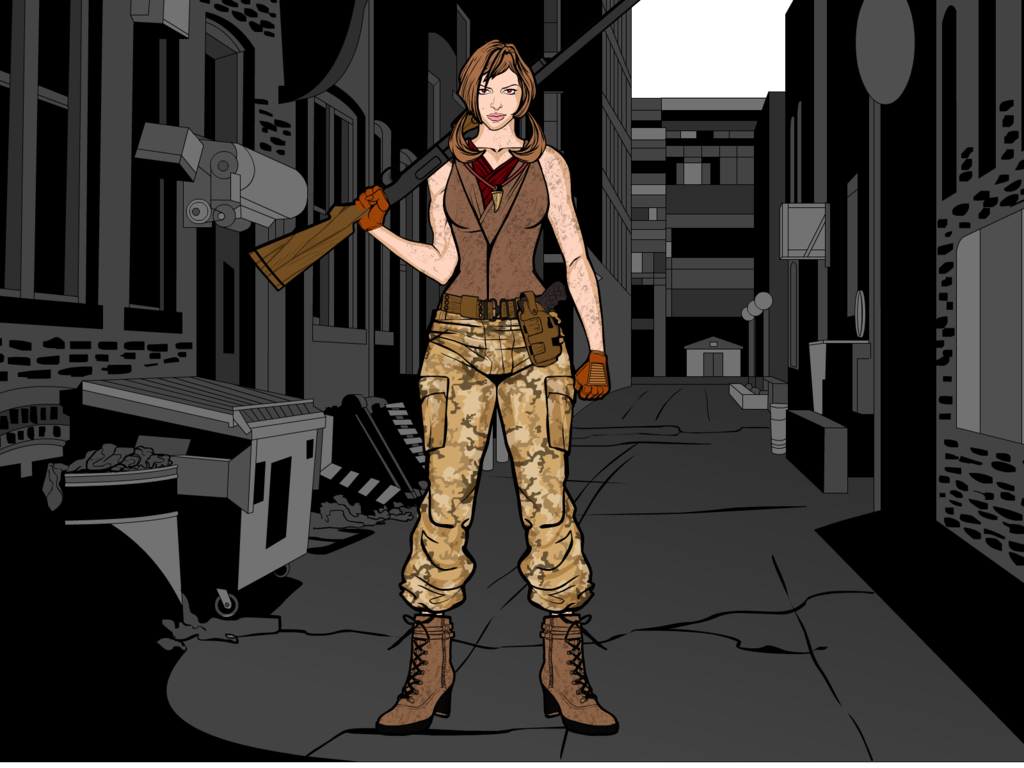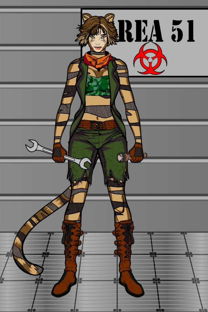 Linda ShepardParticipantThe last one I have of Mitch is a bit of fun I came up with one night. Long story short: Mitch was adopted (…kidnapped…same thing really) by some vampire dude when she was a baby. Only, infant humans are portable sacks of blood that other vampires can easily run off with. So her new daddy-dearest hired a mercenary to guard Mitch while she grew up. His name is Ronan. And he will shank you.