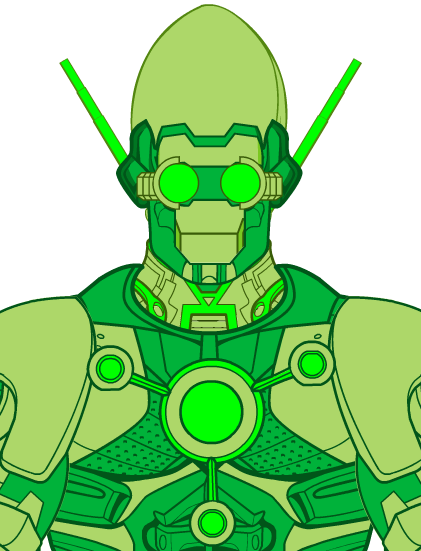 Jake, as the Green Gremlin, was once one of Caligo’s most selfless and light-hearted heroes. He spent time solo as well as a few years in HeroCorps, using his mutant athleticism and balance along with his prehensile tail to fight injustice across Caligo. But when he was kidnapped and given a horriffic surgery by a shady criminal organization, he also became the Gremlin, a huge ravenous beast whose only thought was killing. In order to save the world from his darker half, Jake allowed the hero known as the Battery to completely drain him of all mutation in his DNA, ridding him of the were-gremlin inside, but also taking away those abilities he used when fighting crime. For months he tried living a normal life free of crime-fighting, but eventually the thrill of the fight overtook him and he re-dubbed himself the Green Demon, an un-powered fighter for the people. Eventually Jake was given a technologically advanced suit that allowed him to perform all of the amazing stunts he had done as the Green Gremlin.