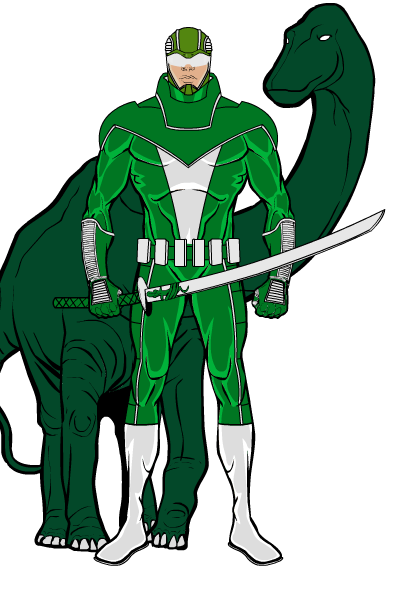 Green Historian. Tim Olander. A member of the Prehistorians whose dinospirit is the brontosaurus.
