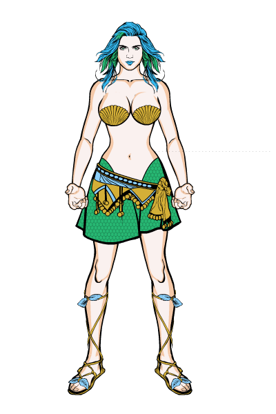 Mermaiden. A beautiful but devious member of Nightmare’s Freakshow. Ability to transform her mermaid’s fin into human legs. Hypnotic powers and skilled in the ways of seduction.