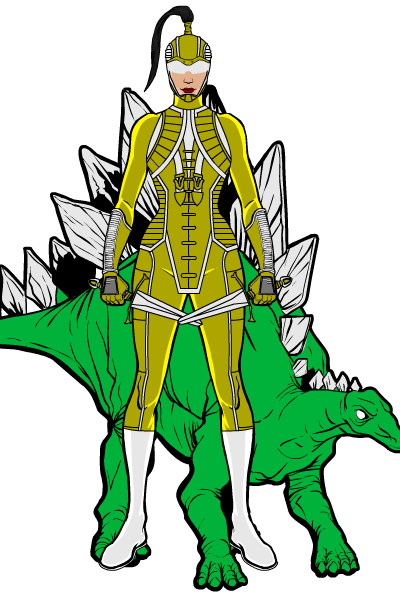 Yellow Historian. Trina Kwang. A member of the Prehistorians whose dinospirit is the stegosaurus.