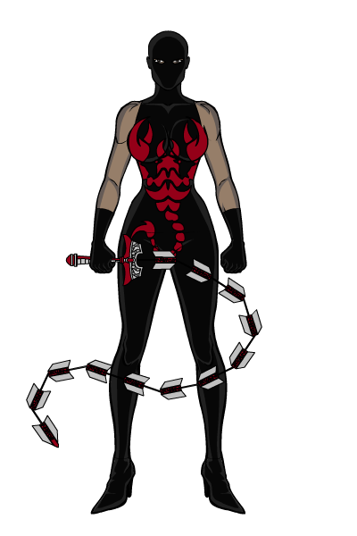 Predicta. Susan Gordan. Her armor can manifest itself into a variety of high-tech weapons.