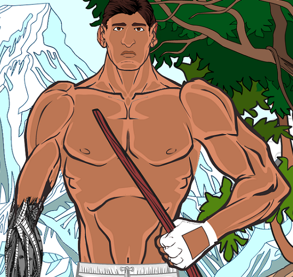 Kat DaragonParticipantSo here’s my first stab at Gavin, my main character’s brother. He’s a bodyguard, 7’0″ tall, and he’s supposed to be a massive, hulking brute. A flesh-colored wall, as it were. Here he’s training outdoors. In the interests of full disclosure, I’ll admit I did some polishing in Paint after finishing him in HM3 – but I was able to get a lot done in Hero Machine first!