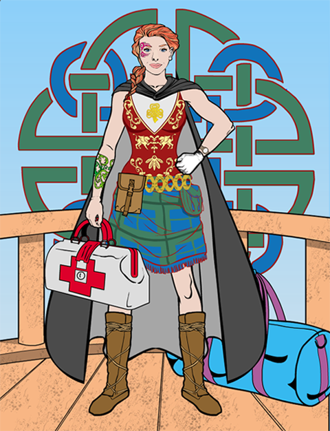 Kat DaragonParticipantThis is Keira Lockhart, my battlefield medic. Boy, was she a blast to roleplay! She was born in Ireland (spelled in my RPG\fanfics as “Eire”) and her late husband was from the highlands of Scotland (now don’t go confusing the Hig’la’ders with the Skaats ;)). And did she ever have a thick brogue on her!! She dropped her leading aitches, trailing tees and dees, any hard cees or kays before tees…