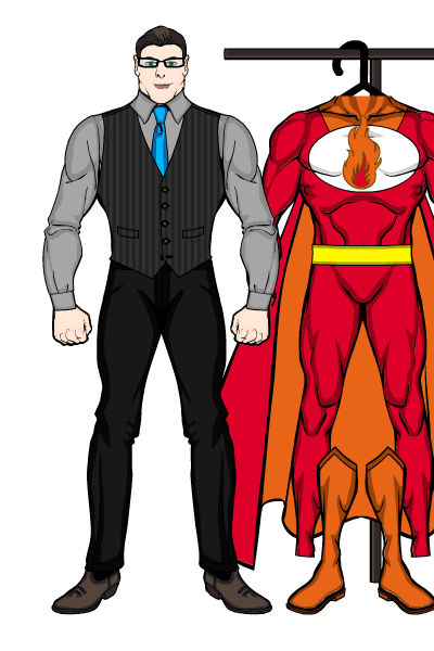 When he went off to college, he ended up in the same room as Aiden Ignatius (Captain Blaze) and they quickly became friends. One day, he happed to walk in on Aiden while he was still in his Captain Blaze costume, but unmasked. He quickly got over his initial shock, and began recommending a change of costume. When Ignatius was recruited by the Warrior, he brought his roommate with him, and he is known as the top superhero costume designer in the world.