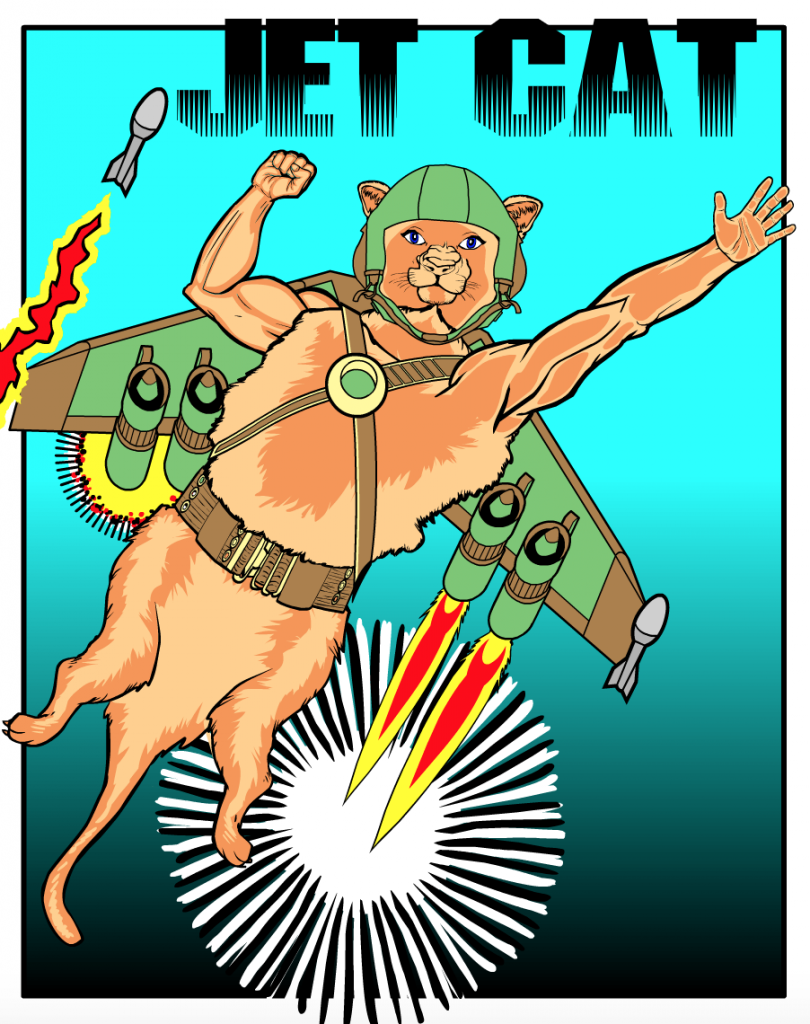 HermanSmellvilleParticipantHere’s a house cat given mutant, human forelimbs and a jet pack by the SPCA (the Society for the Propagation of Cruelty by Animals).