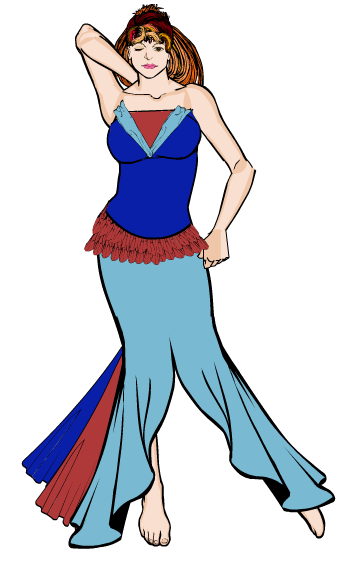 The lace up side top is on the hat, the”high neck bib” top is the spear point, and the open low cut top is the claw!