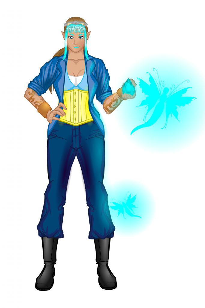These two characters (really one and the same) were part of my mother’s stories. Her stories were like fairy tales, but with her signature snarkiness weaved throughout. Etta was a fae who was tasked with watching the royal family of a country and became the servant master (and part time cook) for the castle. Not pictured is her constant companion Grace the cat. Violetta was Etta’s fae form and she only takes it when one of the royal family members says her true name (Violetta).