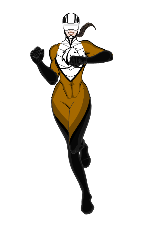 With the ability to move at lightning-fast speeds, Mustang fights crime with reckless abandon. She often butts heads with more calm heroes for her somewhat careless approach to crime fighting, but is a good-natured woman, made reckless by her desire to save the day everyday with no casualties.