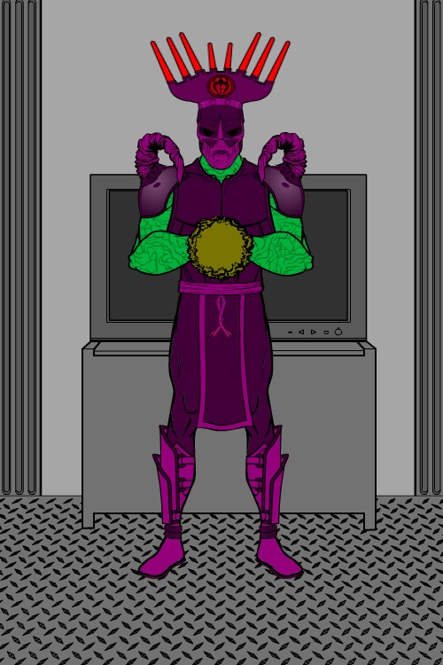 RandallParticipantCongratulations Christi. Something told me you would get it. Keric your piece was well done and thought out as well. Herr D I have already created the geeks and some of the worlds protectors. Me and my nephew are making a comic book and I decided to use this contest to make the villain. I should have mentioned that the power source in his hands was to grant powers. I will probably change the shoulder pads up too.